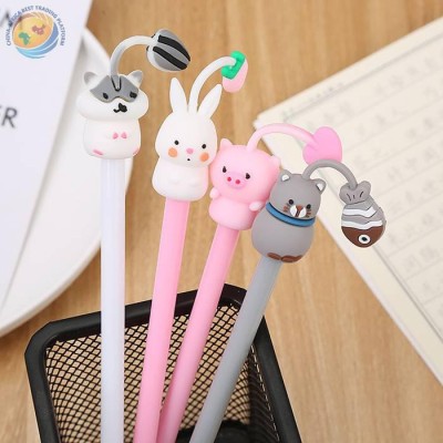 硅胶头中性笔创意3D动物造型卡通笔可爱学习办公文具黑色签字笔