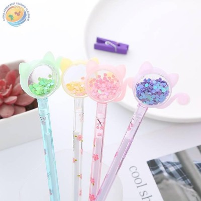 ins高颜值亮片小猫中性笔 可爱猫咪学生笔创意办公文具水性签字笔