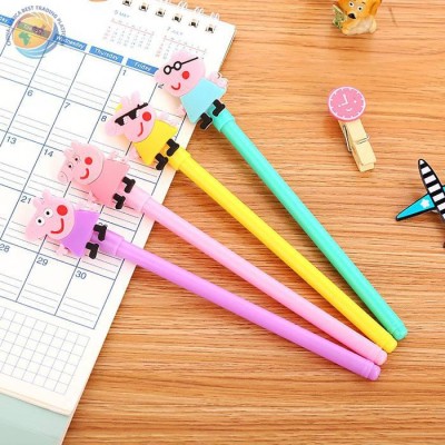 清仓特价创意学习文具卡通贴片小猪中性笔可爱学生水笔办公签字笔