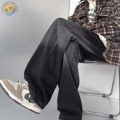 渐变牛仔裤男春秋季新款美式复古潮牌直筒宽松裤