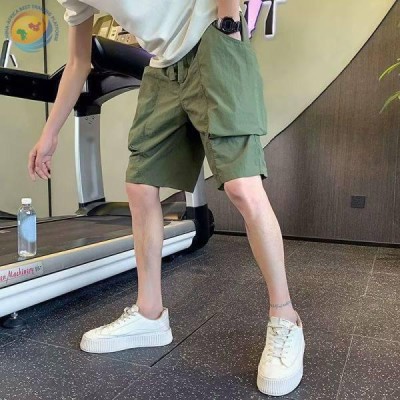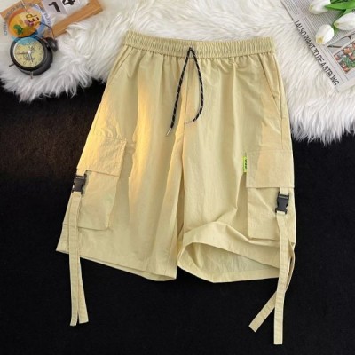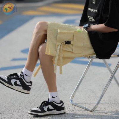 Straight leg casual pants Summer American High street ribbon five quarter cargo shorts
