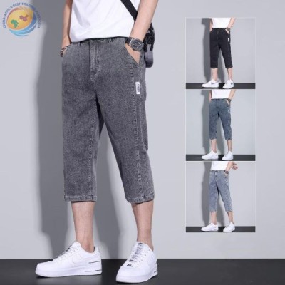Summer thin loose straight tube 2023 trendy brand all-match casual seven-point denim shorts men