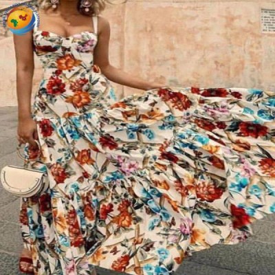 2024 Summer and American foreign trade new women's wish Amazon sexy sleeveless halting long dress printed dress