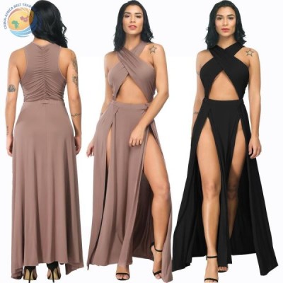 Women\'s socialite halter vest irregular skirt slit casual suit dress woman