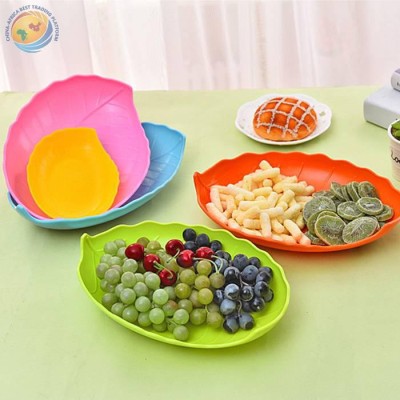 北欧时尚糖果色果盘 树叶形塑料水果盘瓜子零食盘 干果盘凉菜碟子