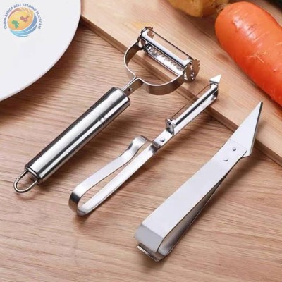 不锈钢削皮刀三件套家用三合一瓜刨多功能刮皮刀刨丝器厨房三件套
