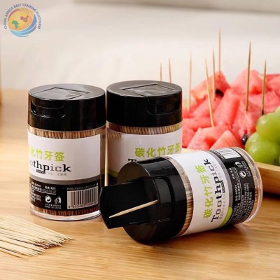 家用碳化牙签 一次性水果叉竹制盒装水果签 创意筒装双头细牙签