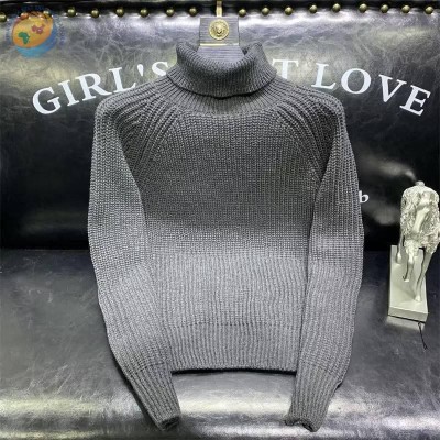 Men's T-Shirt男士高领加厚毛衣宽松潮新款套头上衣纯色休闲长袖