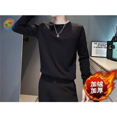 Men's T-Shirt2023秋冬季半高领打底衫男保暖长袖T恤男士德绒内搭