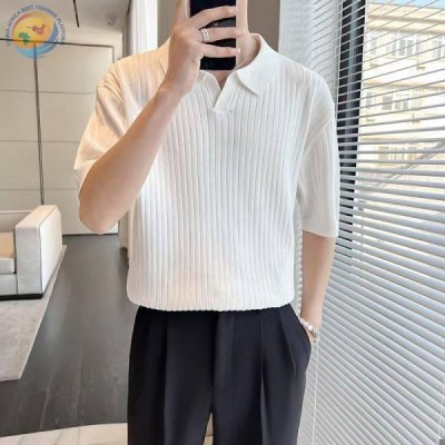 冰丝半袖中性休闲雅潮牌痞帅气针织衫气质上衣