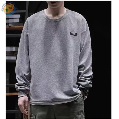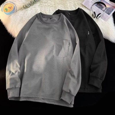 Men's T-Shirt高级设计感圆领长袖T恤男潮宽松休闲打底男装上衣
