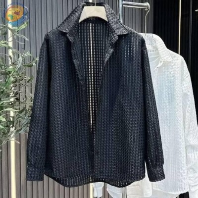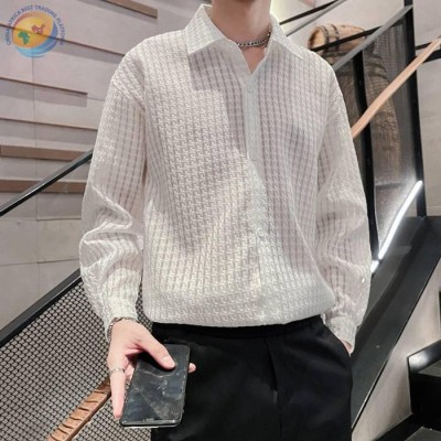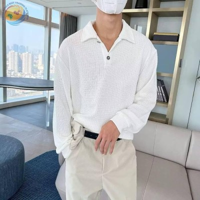 Men's T-Shirt2024男士新款T恤宽松休闲衬衫黑白长袖春秋外搭上