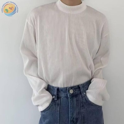 Men's T-Shirt男款可翻圆领打底衫休闲宽松t恤男士秋季长袖t恤衫