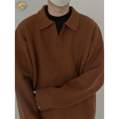Men's T-Shirt男士宽松复古套头宽松线衣男秋季新款潮流百搭上衣