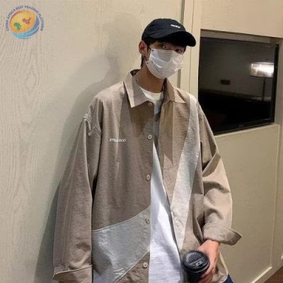 Hong Kong fashion cargo Shirt Casual long sleeve shirt retro shirt jacket
