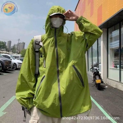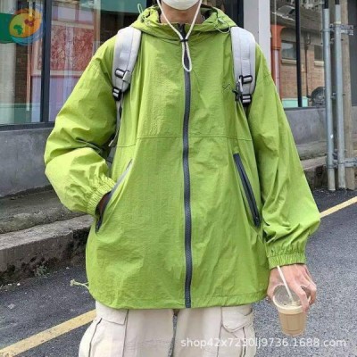2023夏季男士防晒衣潮流慵懒男拉链青春流行连帽潮纯色风衣宽松型