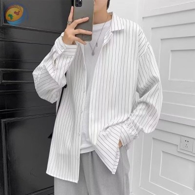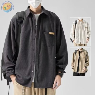 时尚衬衫长袖休闲宽松外套痞帅秋季垂坠感衬衣