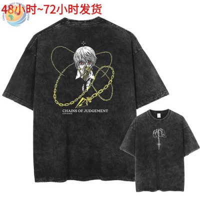 Summer Cotton Loose Washed Tops Tees Anime Print T-Shirt Men