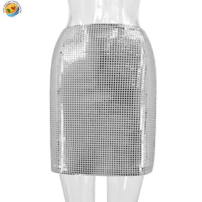 Sexy women\'s dress solid color slim mesh sequin bag hip fashion skirt women