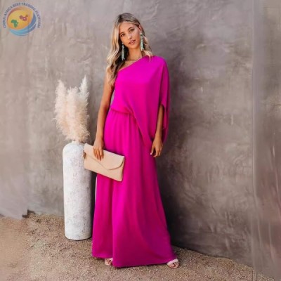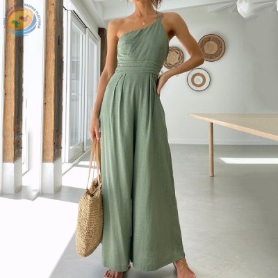 Women\'s spring new fashion solid color diagonal shoulder jumpsuit pants