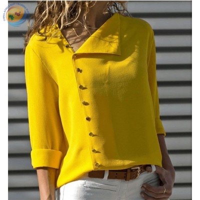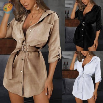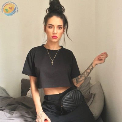 T恤女春欧美ins潮纯色排扣性感修身收腰显瘦