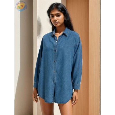 女装宽松牛仔衬衫设计感休闲上衣外穿