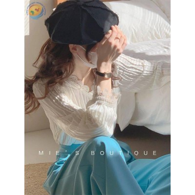 性感复古灯笼袖荷叶边绑带设计衬衫上衣女
