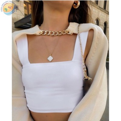 Women\'s explosive sensation crop metal chain lacing halter halter small vest