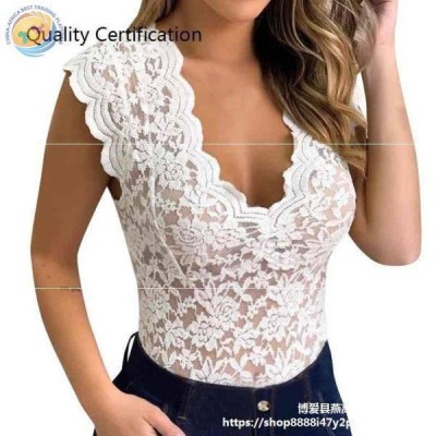 Sheer mesh lace sleeveless smock slim-fit jumpsuit for women