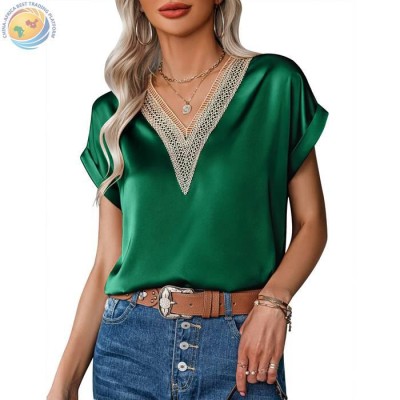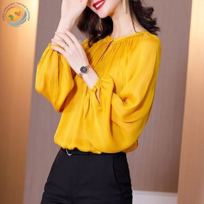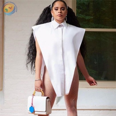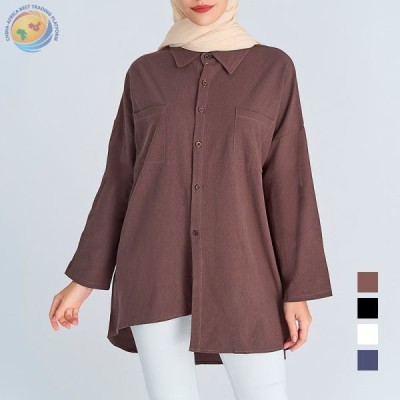 Cross-border new women\'s casual style solid color shirt irregular cotton hemp