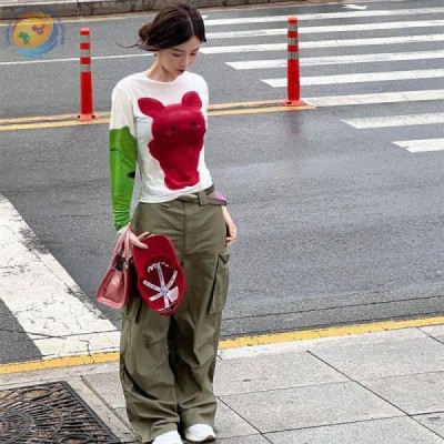 Cartoon mesh long sleeve T-shirt female niche summer new slim-fit top undershirt female