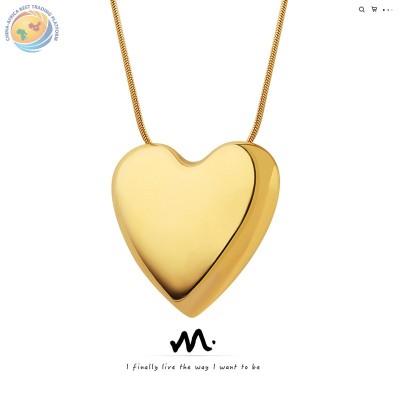 marka法式风复古项链小众设计感蛇骨颈链钛钢镀18k金爱心吊坠项链