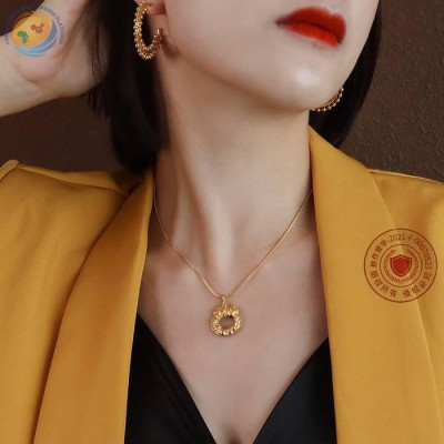 欧美质感小众不撞款异形吊坠项链女钛钢镀18k金饰品女批发P1062