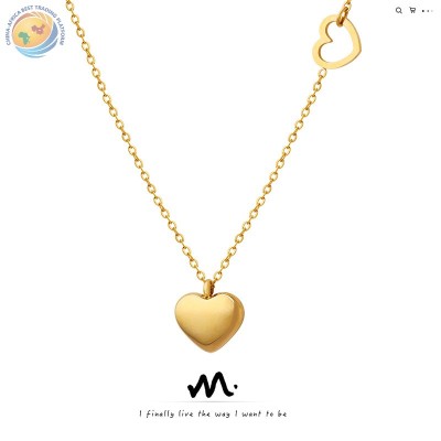 博主同款ins饰品迷你双桃心爱心项链 钛钢镀18K金百搭锁骨链 P221