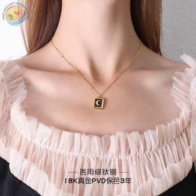 欧美ins风潮流小众H字母幸运项链 钛钢镀18k金锁骨链厂家一件代发