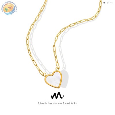 韩式ins风小众设计感白海贝桃心项链女 钛钢镀18K真金锁骨链 P929
