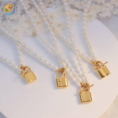 欧美ins冷淡风天然淡水珍珠OT扣锁头项链钛钢镀18K真金饰品 P102