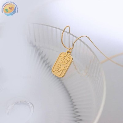 国潮小众时尚设计發财暴富字样吊坠项链钛钢镀18K真金锁骨链首饰
