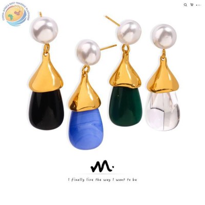 欧美新款跨境夸张小众设计感钛钢镀金水滴树脂吊坠耳环饰品批发女