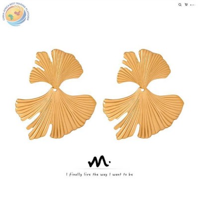 欧美新款时尚轻奢复古清新百搭钛钢镀金银杏叶耳环不规则饰品女