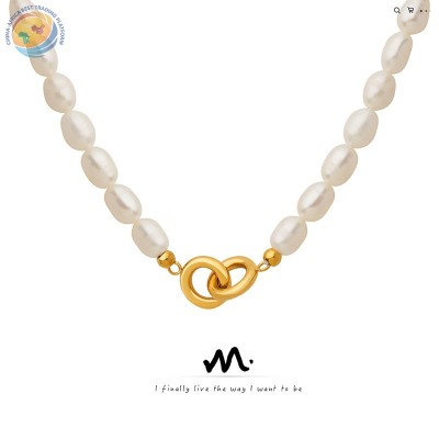 法式不掉色小众轻奢双环扣淡水珍珠百搭钛钢镀金项链不掉色饰品女