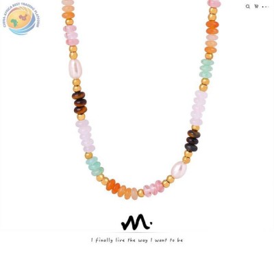 欧美新款复古时尚轻奢小众钛钢珠天然石淡水珍珠手工串珠项链饰品