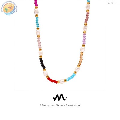 多巴胺珍珠高级感钛钢镀18K金小众彩色天然石手工串珠项链女饰品