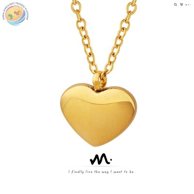 欧美ins冷淡风轻奢刻字桃心不锈钢项链潮流钛钢镀18K金饰品 P632
