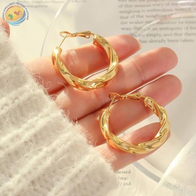 法式marka复古气质款扭纹C形耳环钛钢镀镀18K真金不规则耳饰 F249