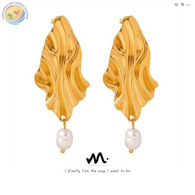 欧美新款不规则时尚轻奢个性钛钢镀金淡水珍珠吊坠耳环饰品女批发