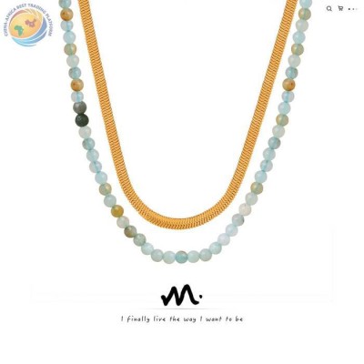 新款轻奢高级感个性钛钢镀金蛇骨链天然石手工串珠双层项链饰品女