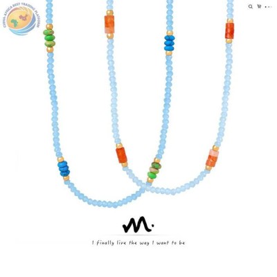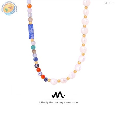 欧美新款跨境高级感彩色天然石巴洛克手工串珠项链小众设计饰品女