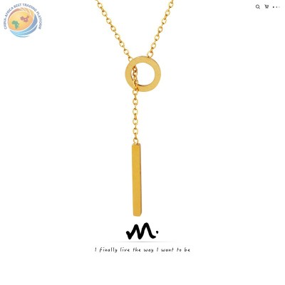 Marka欧美风不规则几何吊坠方牌项链钛钢18k金气质ins简约锁骨链