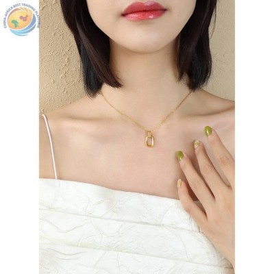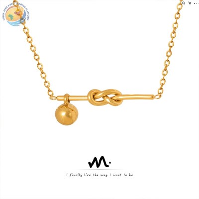 法式ins风唯美创意几何打结钛钢吊坠项链小众百搭设计镀金饰品女
